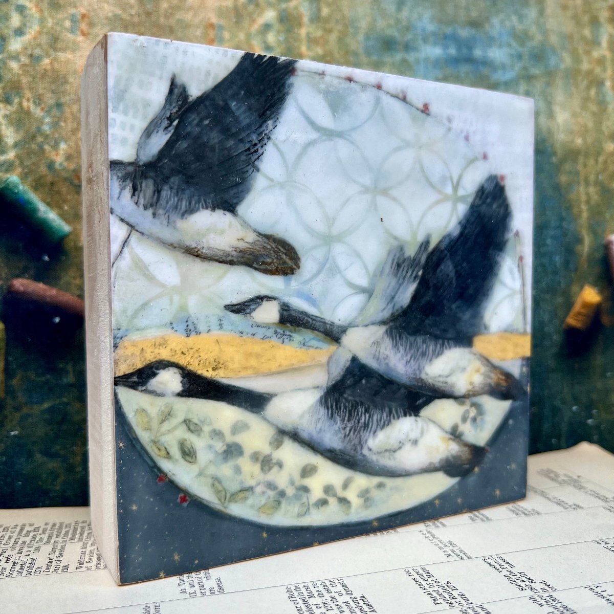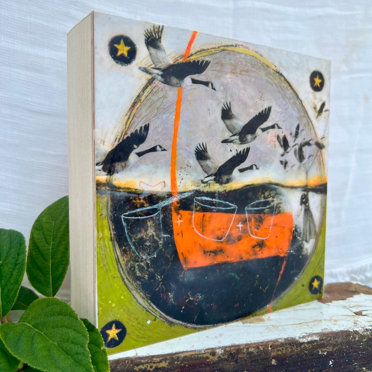 We are a small team that loves what we do, making each original piece of art by hand, from concept to final encaustic coat. We are busy in our studio every day, creating pieces that bring us joy that we can then pass on to you.