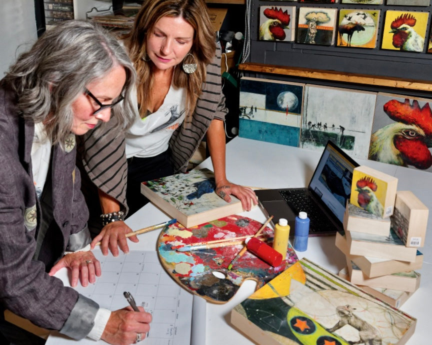 Artist owners Christina Lovisaand Pamela Rideout-Smithshare a common passion for creating art. "There is arguably no greater joy than spending a day in the studio!" From initial concept and design to displaying our final product, every step is completed by us, by hand. We cannot deny that we LOVE what we do.